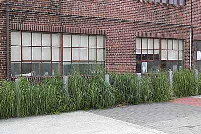 The site was regraded to funnel stormwater from higher elevations at the center of the property to bioswales on the perimeter that capture and infiltrate the runoff. A central, raised grassy area and permeable pavement help reduce the flow to the bioswales, which are filled with native plants.